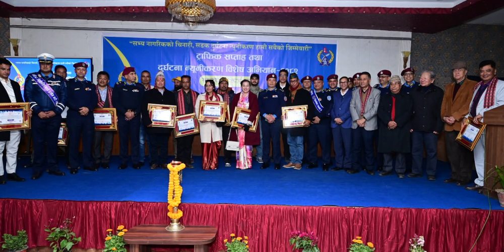 प्र.म.नि. दानबहादुर कार्कीको प्रमुख आतिथ्यमा ट्राफिक सप्ताह २०८२ शुभारम्भ दुर्घटना न्यूनीकरण विशेष अभियान सुरु, सभ्यताको मापन ट्राफिक नियमबाट : आईजीपी कार्की काठमाडौं, पौष २६ (शनिबार) — प्रहरी महानिरीक्षक दानबहादुर कार्कीको प्रमुख आतिथ्यमा आजदेखि ट्राफिक सप्ताह २०८२ औपचारिक रूपमा