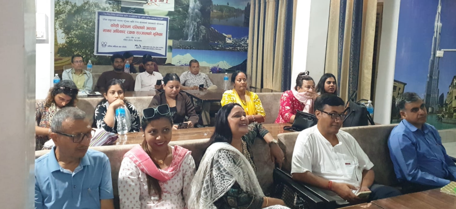 दलितमाथि विभेद अन्त्य गर्न मानव अधिकार रक्षक सञ्जाल सशक्त बनाउनुपर्नेमा जोड विराटनगर, चैत २१ — अनौपचारिक क्षेत्र सेवा केन्द्र (इन्सेक) कोशी प्रदेशका संयोजक मनोहर पोखरेलले समाजमा अझै पनि विभेदका घटनाहरू कायम रहेकाले मानव अधिकार रक्षकहरूको भूमिकालाई थप सशक्त बनाउनुपर्ने आवश्यकता औँ