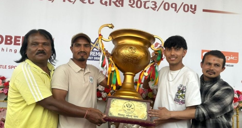 विराट गोल्डकपको उपाधिका लागि झापा–११ र सम्राट स्पोर्टिङ क्लब आमनेसामनेविराट गोल्डकपको उपाधिका लागि झापा–११ र सम्राट स्पोर्टिङ क्लब आमनेसामने विराटनगर । ३८औं संस्करणको नोबेल विराट गोल्डकप अन्तर्गत उपाधिका लागि पूर्व विजेता झापा–११ र घरेलु टोली सम्राट स्पोर्टिङ क्लबबीच आज रोमाञ्चक
